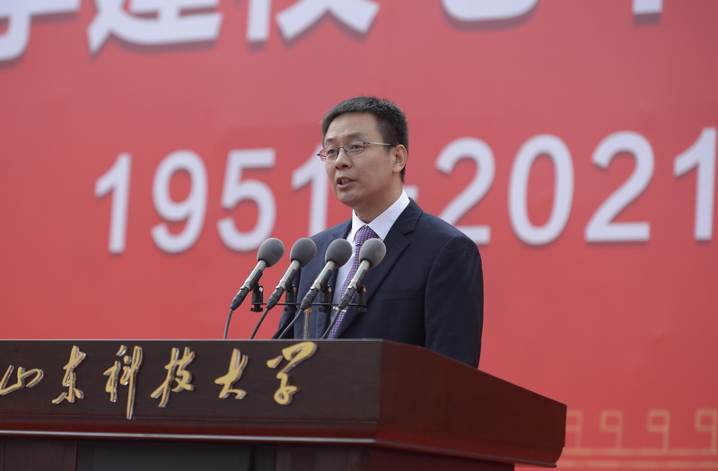 姚庆国要求,全体科大人承载着前辈先贤的美好夙愿,托举着莘莘学子的远大理想,肩负着齐鲁人民的深情嘱托,以更加广阔的视野、一往无前的勇气,奋力续写自强不息、追求卓越的新华章。