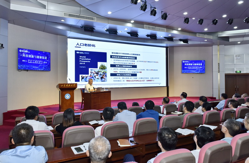 9月6日,学校举办“泰山讲坛”第41期报告会。康复大学(筹)领导小组副组长、中国工程院院士董尔丹教授应邀做客“泰山讲坛”,作题为“科技创新与健康促进”的专题报告。校党委书记罗公利主持报告会,校长曾庆田出席报告会。