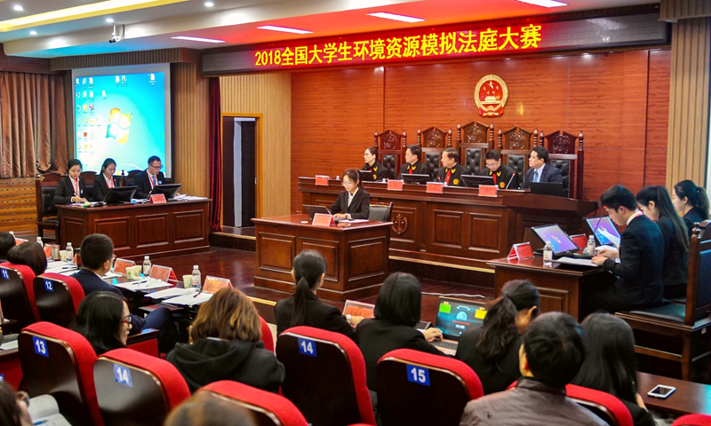 “修公路造成环境污染,渔民的鱼大量死亡,难道不应该赔偿吗?”“滥砍滥伐国家珍贵林木,到底应该负什么责任?”模拟法庭上,来自全国的高校的法学专业学生唇枪舌战,摆事实、讲道理、找证据、论观点,围绕“绿水青山就是金山银山”的环保发展理念,从实际生活出发,进行激烈的“庭审”辩论。