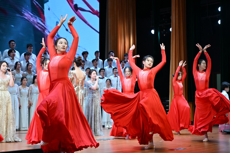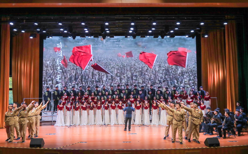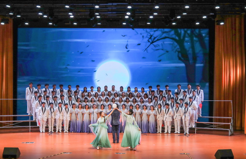 舞台之上,旋律起伏,情感汇聚。各学院的演唱不仅是比拼,更是一次深情的集体表达。歌声里,交织着对历史的敬意、对山河的热爱与对未来的豪情。当朗诵声、情景戏、光影秀与音符共舞,经典歌曲便焕发出青春的活力,留下震撼而悠长的回响。