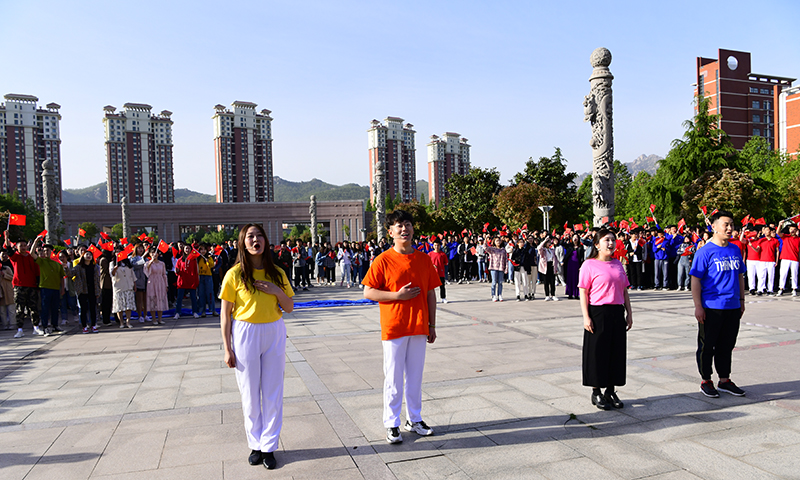 庄严肃穆的升旗仪式后,4名学生代表与国旗护卫队成员合诵红色诗篇《与国同行,与国筑梦》,代表广大青年学生发出牢记时代使命、接续奋斗、砥砺前行的时代最强音。文法学院学生代表刘卜源作《青年有为,筑梦中华》演讲,表示将不忘初心,奋发有为,开拓创新,为实现中华民族伟大复兴贡献力量。