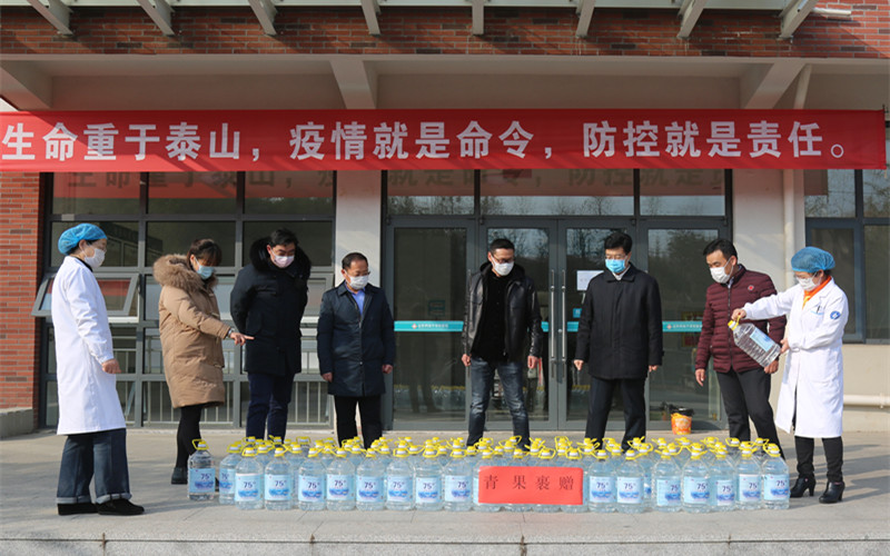 2月8日,山东青果裹供应链管理服务有限公司向博鱼网页版捐赠了500升75%酒精消毒液,用于支持学校的疫情防控工作。