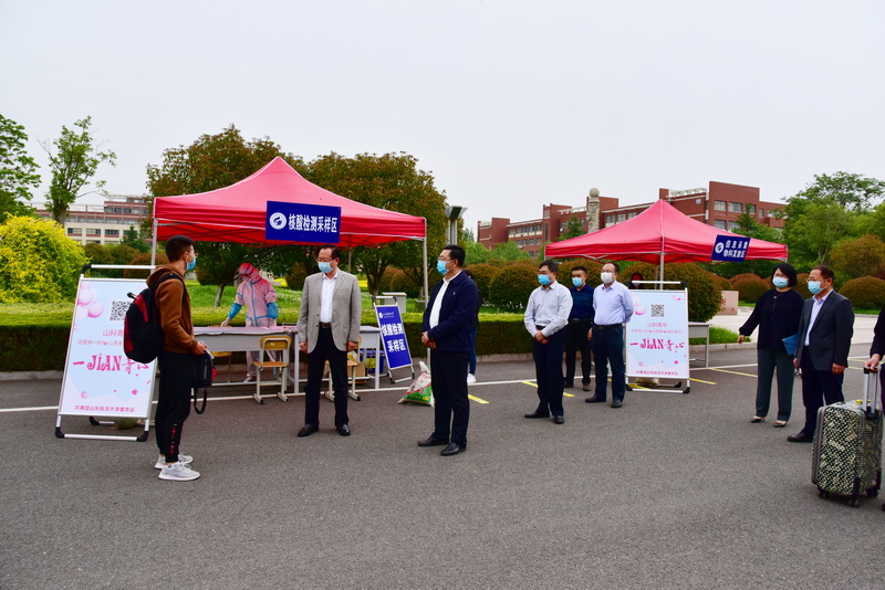 在首批学生返校的日子,为切实保障好返校学生的健康安全,学校精心部署学生返校的各个环节,各部门与各学院协同作战、多措并举,全方位立体化保障学生“安心回家”。自早晨6:30起,校领导、相关职能部门和各二级学院负责人以及辅导员等便开始等候返校学生,迎接学生重返校园。