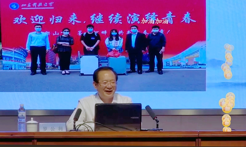 此前,学校投入专项经费,在全省率先在教室课堂等地安装常态化直播平台,学生在教室、宿舍或在家中都可以同步上课。罗公利书记的思政课不仅实现了在线直播,而且可以线上录播+线下点播,除部分师生代表在逸夫讲堂现场聆听外,全校本科生和研究生或在各学院分会场或通过网络直播进行了收听收看。