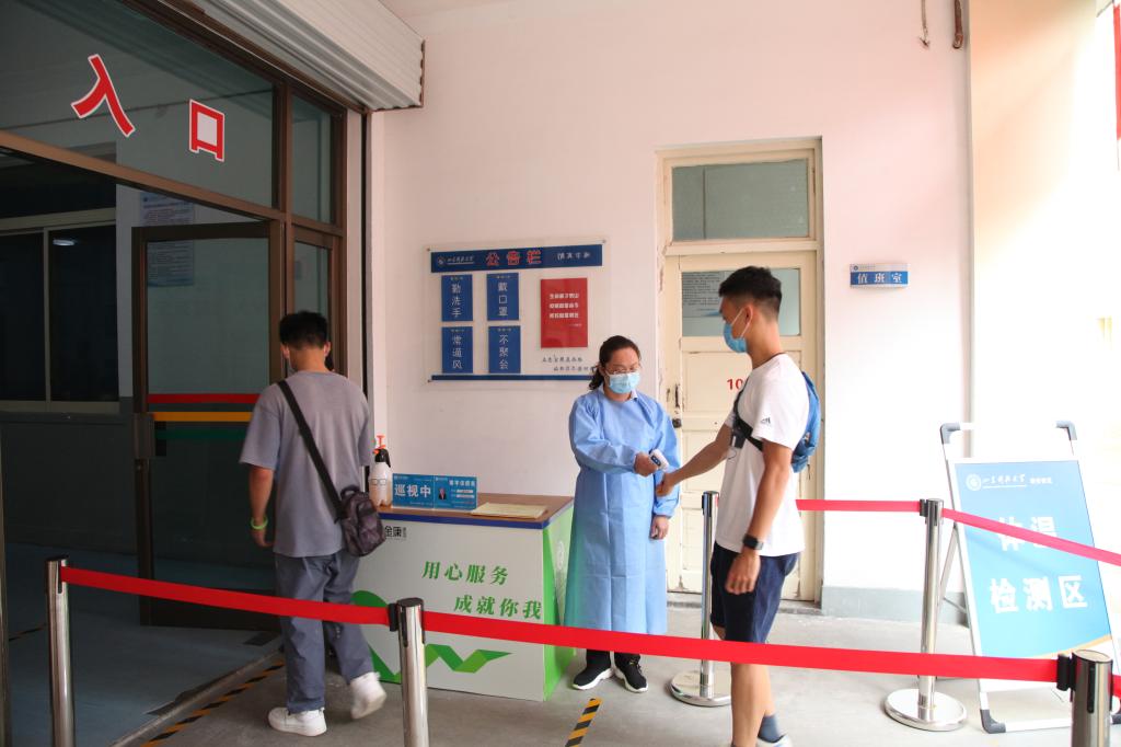 对进入校园学生测量体温