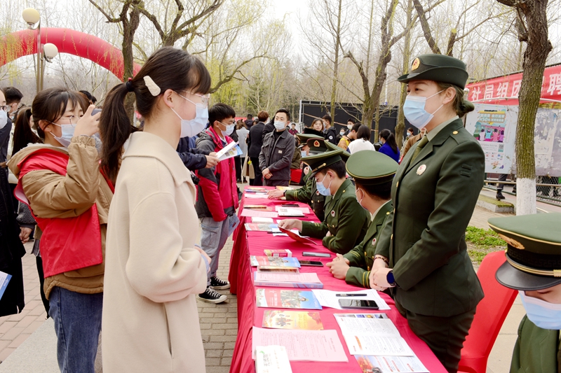 现场除了各家企业之外,大学生征兵服务站成了很多毕业生驻足停留的地方。“军人是一种崇高的职业,身着迷彩也能建功立业”学生处就业市场科科长李雷介绍,“保家卫国也能建功立业,博鱼网页版春季招聘会专门设置了征兵服务站区,由退伍大学生向毕业生及各年级同学介绍征兵入伍政策、鼓励吸引大学生入伍建功立业。”