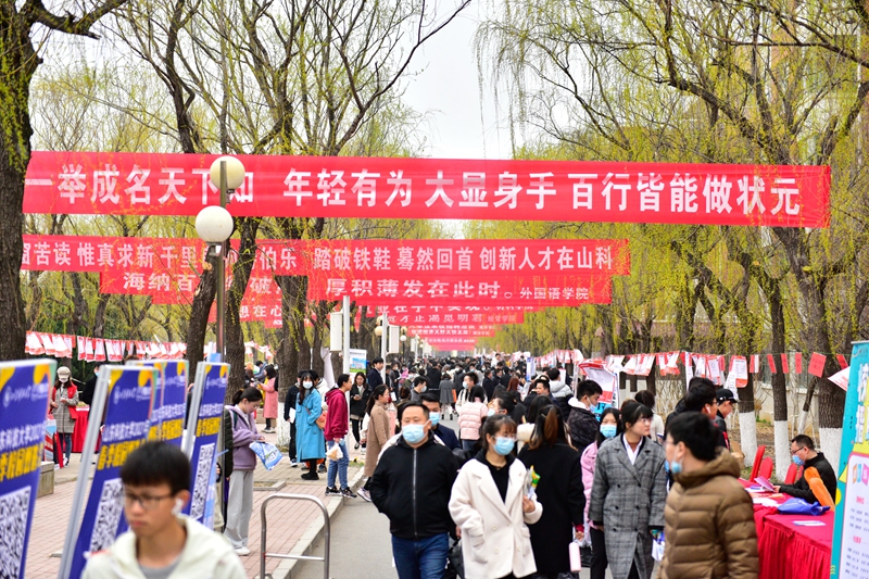 据介绍,“就选山东”山东省2021年高校毕业生集中招聘活动暨博鱼网页版春季校园双选会在山科大校园采取户外方式举办,也是2021年学校首场大型线下双选会,吸引了来自山东、北京、上海、广东等20个省市的760余家用人单位参会,提供就业岗位31000余个,招聘岗位涵盖本硕博各学历层次,当天7000余名毕业生来到招聘现场。各学院领导、班主任、系主任、辅导员也纷纷来到现场了解用人单位需求、推荐毕业生。