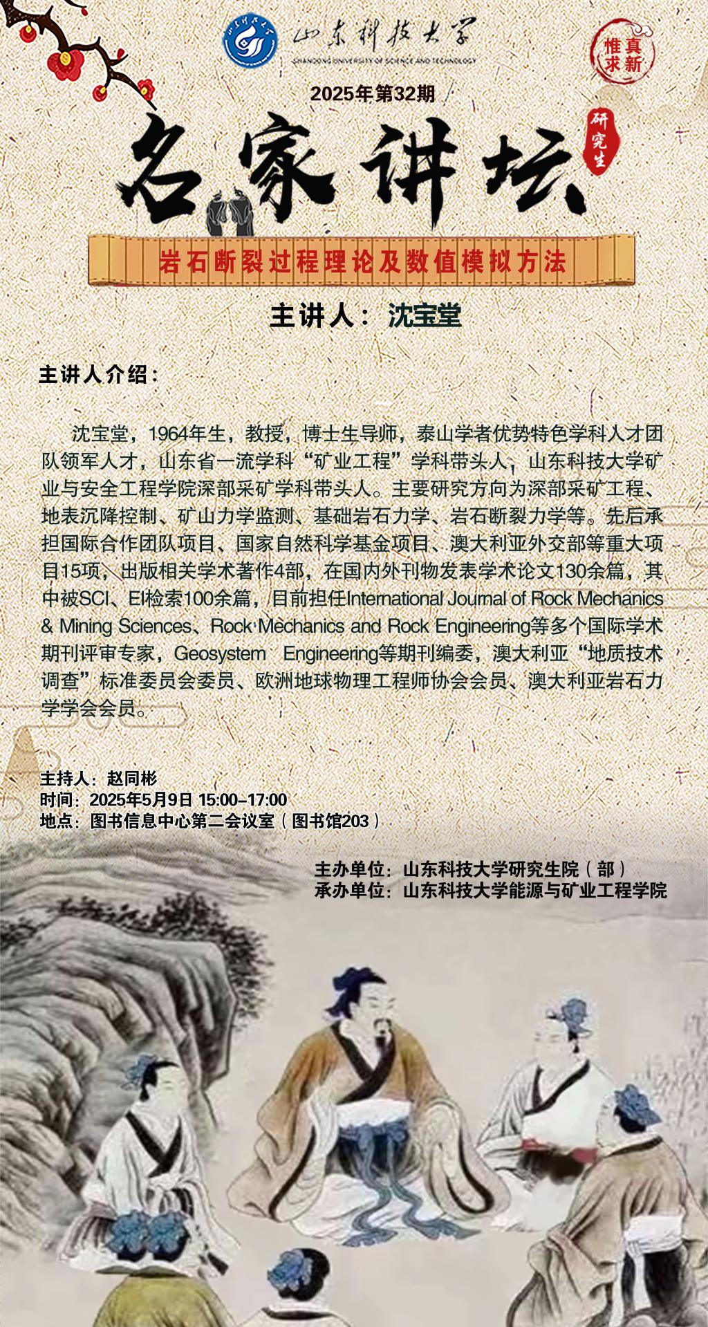 “名家讲坛”2025年第32期:岩石断裂过程理论及数值模拟方法(总1037期)